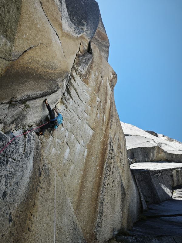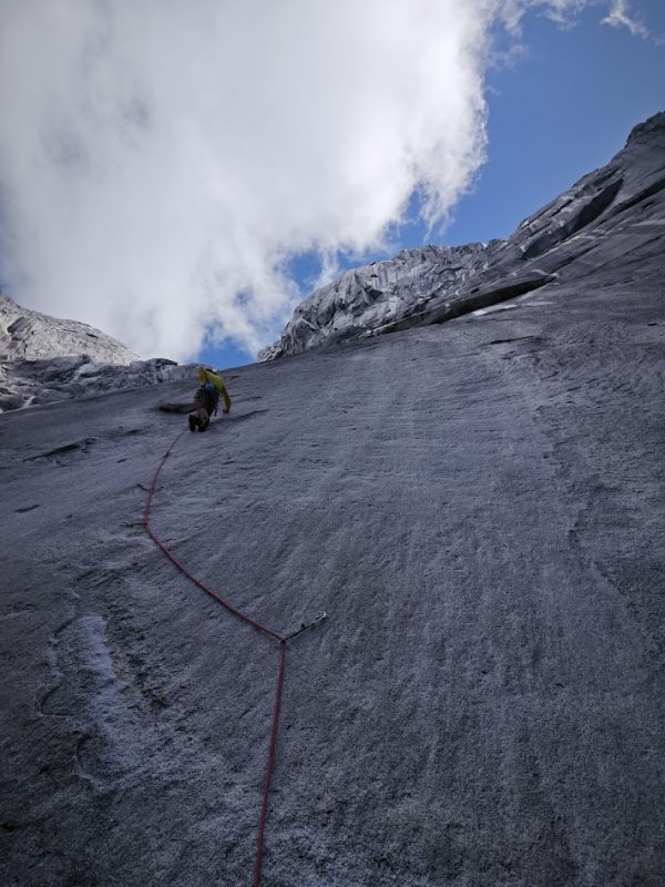 Slightly tired but super motivated, we started our almost 3-hour walk to the base of the route. I won the draw and started our first climb of the trip. The first two pitches were a nice introduction into beautiful, well-protected cracks, but the third one was already the real deal. A super tiny slab crack with very technical footwork and small gear was a good wake-up call for me.